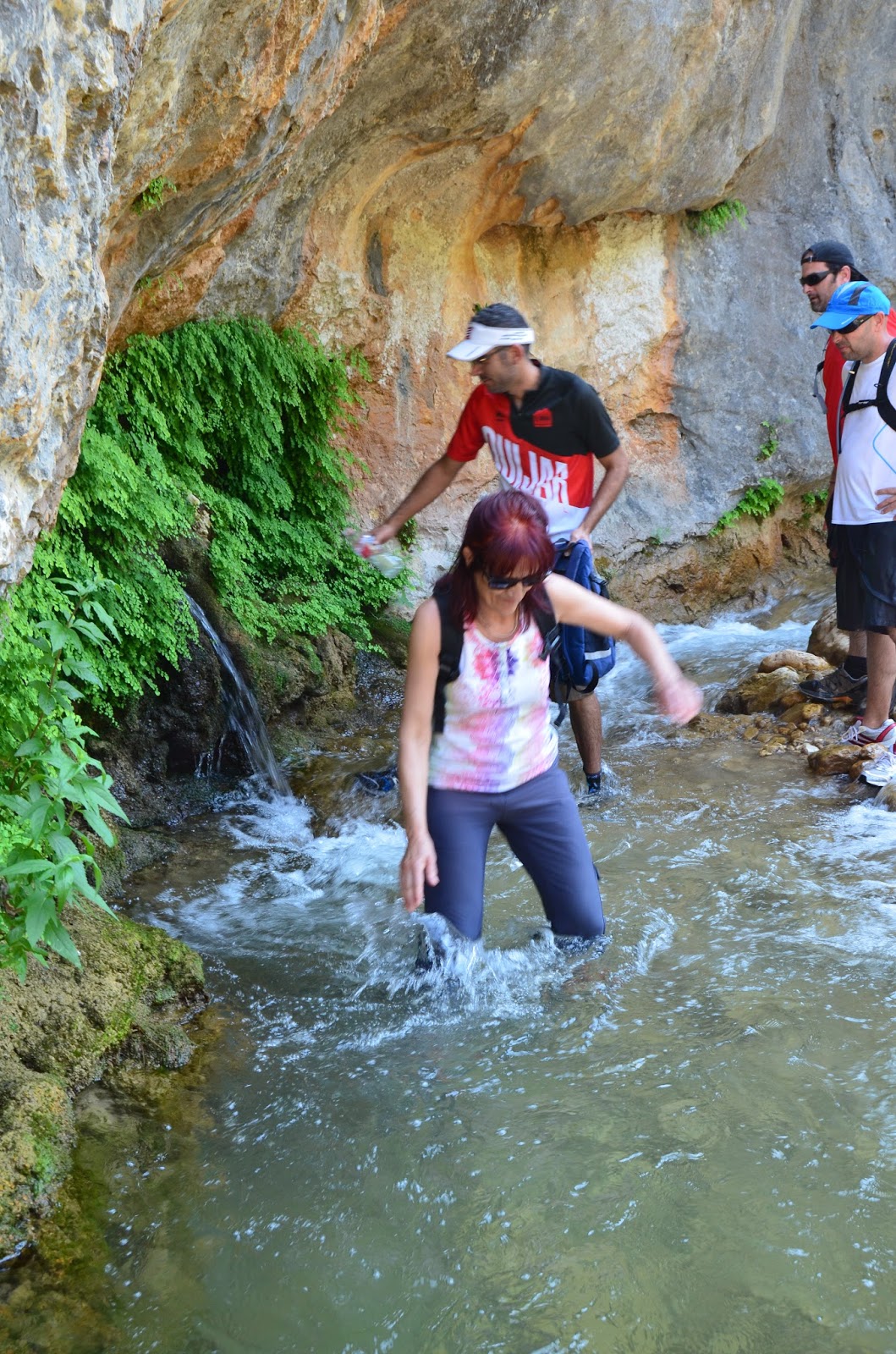 Salimos de la aldea de Collado Tornero, que es donde comienza el cañón del río Tús, bajando por una senda preciosa entre bancales y nogales, hasta el cauce del río, justo en el lugar donde vierte sus aguas el arroyo de los Marines o de la Lastra, santuario de descenso de barrancos de aficionados de toda España. Desde aquí remontamos el río, unas veces por el agua y otras por sendas paralelas, sorteando o introduciéndonos en pozas espectaculares y llevando cuidado con los cantos rodados. El agua está muy fría y costará trabajo adaptarse a ella. En dos kilómetros estaremos en el Desfiladero del Infierno,entre dos paredes calizas completamente verticales que pasaremos con el agua por la cintura (no sabemos cómo estará este verano, después de la crecida de marzo pasado), que separa los calares de la Sima y del Mundo. En algo más de 3 km. estamos en la frontera entre Albacete y Jaén, la entrada al parque natural de Cazorla, Segura y las Villas. justo donde desemboca en el Tús el arroyo del Avellano (agua potable y si nos introducimos alrededor de doscientos metros por él la posibilidad de ver una cascada gigantesca). A partir de aquí el cañón se ensancha y encontramos un camino que cruza el río y nos lleva, entre pinos laricios, al aserradero, abandonado y que identificaremos porque hay una nave grande donde un pastor guarda su rebaño.Está en un circo de montañas y destaca el Puntal del Caballo. Prestar atención porque es fácil pasar de largo. El regreso es por el mismo lugar, con la particularidad de que las sendas que suben y bajan paralelas al río se ven con más facilidad que a la venida y se evitan tramos por agua, por lo que es regreso se hace más rápido. Durante el recorrido aprovecharemos para bañarnos. La comida se hará en el aserradero y tomaremos un bocado antes de llegar a él. Cuando acabemos podemos tomar café en el balneario, un lugar maravilloso junto al río y si alguien aún tiene hambre, tapas fabulosas.