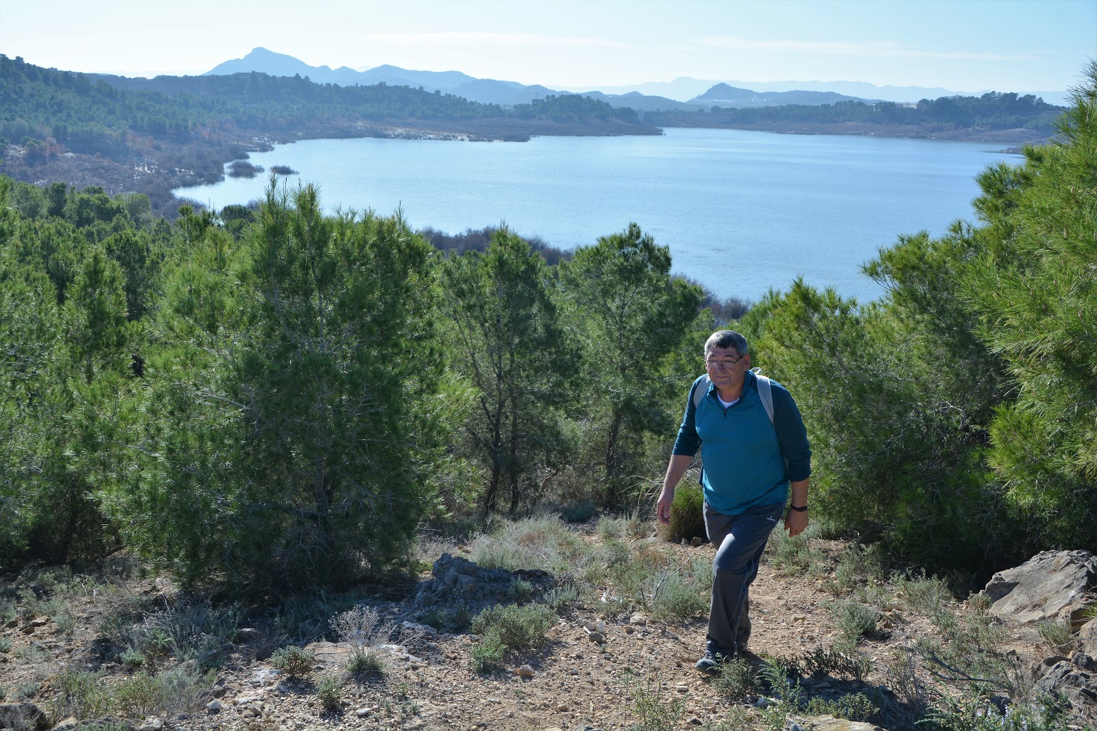 Partimos del albergue municipal para dirigirnos a la parte superior de las presas por el PR-MU 82. Pasamos por encima de las dos presas y una vez pasadas tomamos el camino que lleva al repetidor de Los Ásperos, para dejarlo en el primer camino que encontramos a la derecha, el que lleva a la cantera, para pasar por en medio de ella y ver la repoblación que se está haciendo. Disfrutaremos de las vistas que del embalse y la Vega de Santomera hay desde los dos miradores que aloja. Seguiremos por el camino principal que atraviesa la cantera para dejarla por uno más estrecho que baja hasta la Cañada Perdida, que tomaremos hacia el norte, caminando entre pinos y limoneros, hasta encontrarnos el PR-MU 82 que tomaremos a la izquierda, hasta llegar a un camino que sale a la derecha y que zigzagueando entre pinos nos llevará de nuevo al PR-MU 82, que viene desde La Matanza. Seguimos por el PR MU 82 hasta subir al mirador en el que se encuentra el repetidor. Bajamos de nuevo al PR-MU 82 y lo seguimos a la izquierda, hasta llegar a una torre eléctrica, en un cruce de caminos. Desde aquí tomamos el segundo que sale a nuestra derecha y nos encaminamos hacia el mirador del Búho. Se acaba el camino y seguimos por una senda casi invisible que crestea hasta llegara una planicie rocosa, a la que subiremos para disfrutar de la mejor vista del embalse y todo el relieve de la Comarca Oriental y parte de la Región de Murcia. Volvemos sobre nuestros pasos hasta la torre eléctrica, para tomar, a nuestra derecha el PR-MU 82, que vuelve al albergue. Antes nos encontraremos a la derecho el mirador de los Clemente, otro lugar espectacular. tendremos la opción de dejar el PR-MU88 y bajar por una senda estrecha y resbaladiza casi al pie del agua, para regresar por la misma hasta el mirador de la Cruz, y, desde aquí, bajar por el camino principal hasta los dos miradores que hay en el extremo norte de la presa principal, Desde aquí, por el camino de venida, otra vez al albergue.